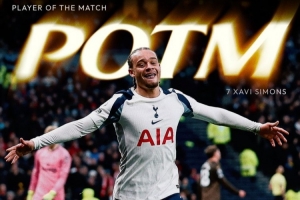 据赛后热刺官方消息,哈维·西蒙斯被评为此役队内最佳球员。
